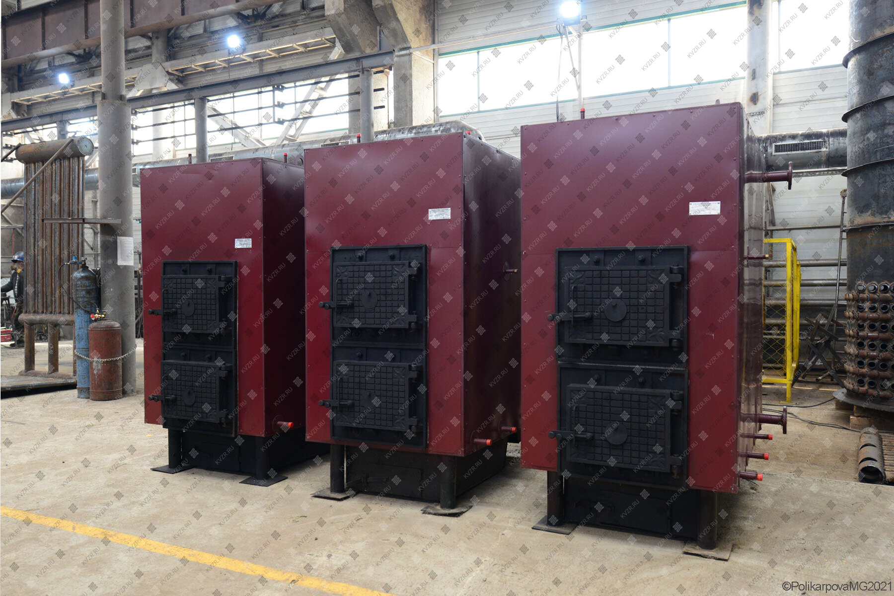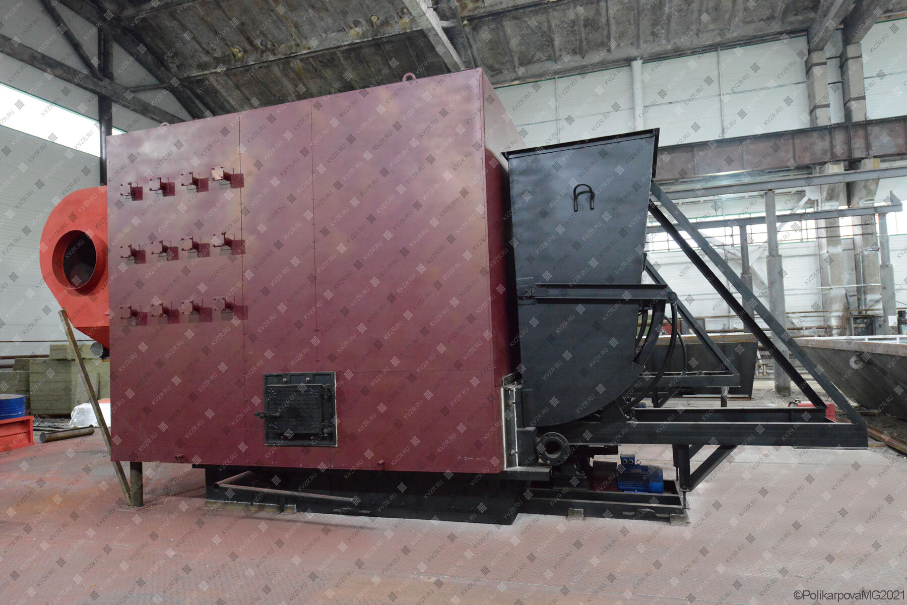 Российские водогрейные стальные отопительные промышленные котлы КВр с ручными колосниковыми топками устанавливаются в котельных с ручными топливоподачей и шлакоудалением. Блок котла и топка имеют горизонтальную конструкцию. Топливо в топку подается ручным способом через загрузочную дверцу и сжигается на слоевой топке, под которую вентилятором топки подается воздух для горения. Провал шлака производится через отверстия в колосниках и обратно через загрузочную дверцу в котельный зал.